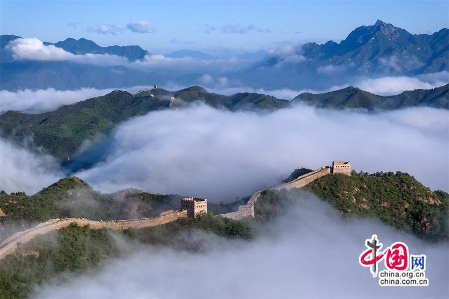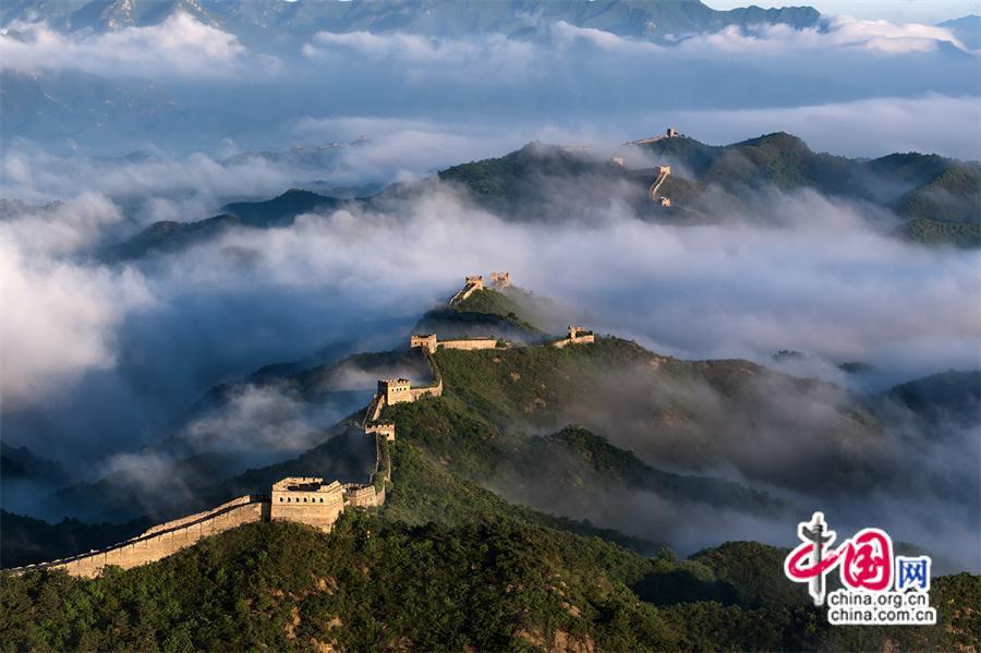 5月26日,雨后早晨,河北省承德市灤平縣境內(nèi)的金山嶺長城出現(xiàn)云海奇觀,變化莫測間。