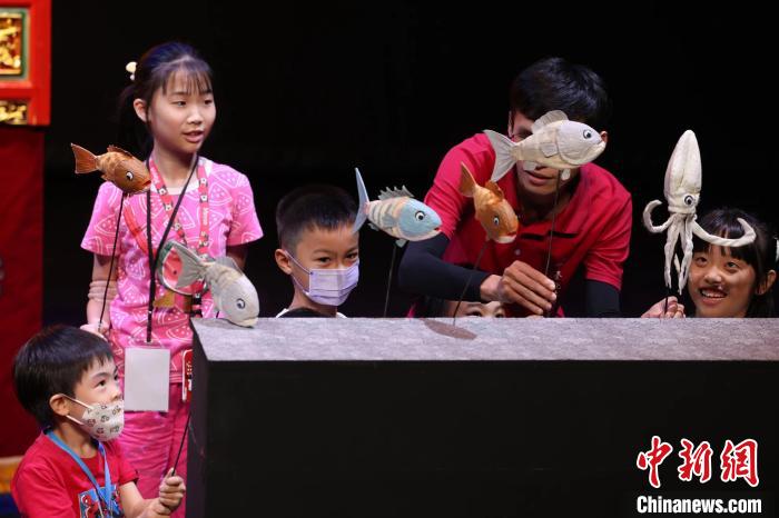 7月10日,臺(tái)灣傳統(tǒng)藝術(shù)中心2024兒童戲曲巡演活動(dòng)“請囡仔來看戲”在臺(tái)北起跑。圖為臺(tái)北木偶劇團(tuán)在記者會(huì)現(xiàn)場為兒童表演。(臺(tái)灣傳統(tǒng)藝術(shù)中心 供圖)