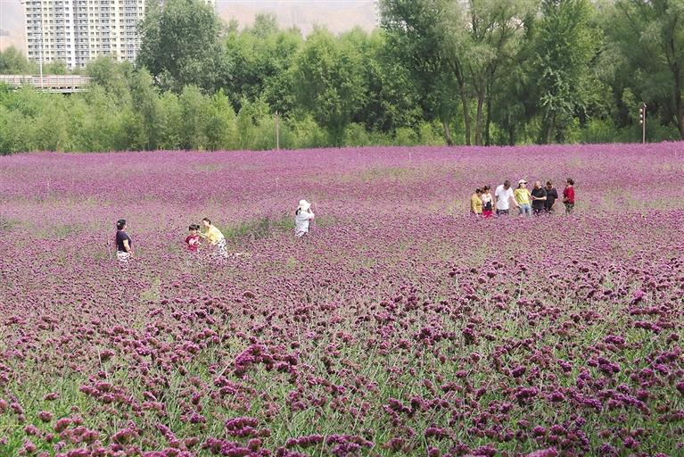 如果說(shuō)涼爽是秋的前奏,那么絢麗便是它的主旋律。初秋的永靖黃河花堤,大面積馬鞭草競(jìng)相盛開,絢爛如詩(shī),吸引眾多居民和游客前來(lái)賞花打卡。遠(yuǎn)看,大片的馬鞭草盛放成一片紫色的花海,秋千、風(fēng)車、長(zhǎng)椅點(diǎn)綴其間,行走其中,仿佛置身普羅旺斯的薰衣草田。沿著花海間的步道緩步前行,一陣微風(fēng)裹挾著清甜的香氣迎面撲來(lái),讓人頓感清涼舒暢、心曠神怡。