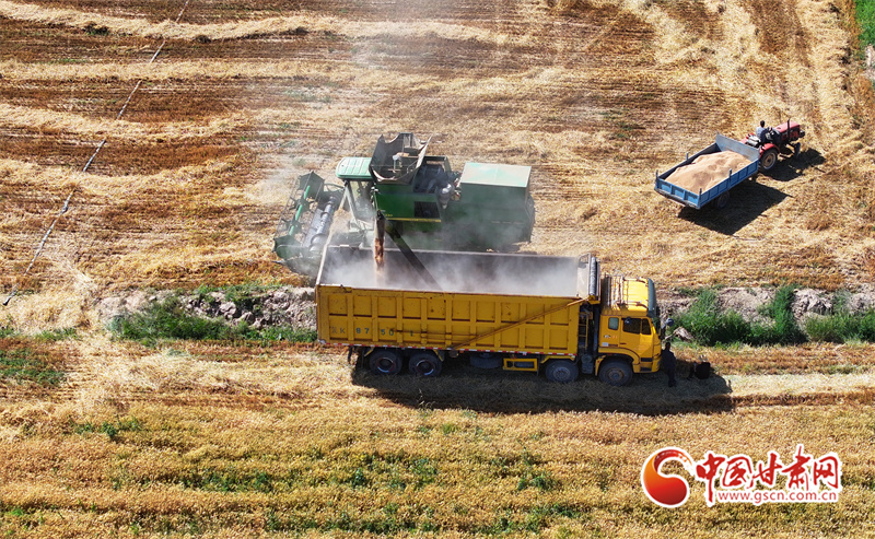 眼下,位于祁連山下的民樂縣南古鎮(zhèn)毛城村800畝連片小麥種植基地上,機聲隆隆,農(nóng)機手們駕駛收割機穿梭往返麥田之中搶收小麥,一派忙碌的豐收景象。近期,隨著民樂縣沿祁連山冷涼山區(qū)小麥迎來成熟季,民樂縣種植的26萬畝小麥進入了繁忙的收割期。