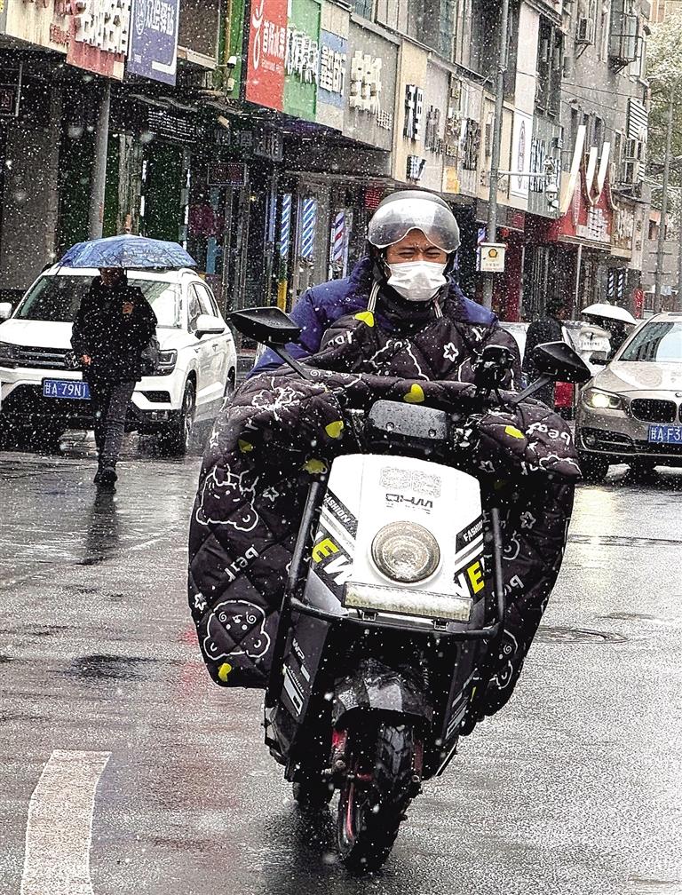 11月24日,一位市民在雪中騎行。蘭州日報社全媒體記者 甘霖 攝
