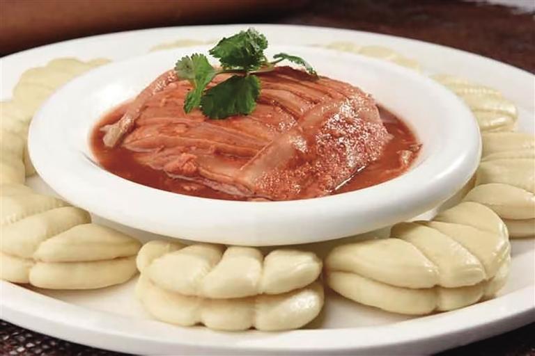“隴菜口味獨(dú)特,以五味見長,酸辣、咸鮮、苦味、五香味、香辣兼具,口味醇厚,汁咸味鮮。”宏豐隴宴蘭州老菜館創(chuàng)始人董巖一一向記者介紹烹飪的門道,隴菜烹飪技法常用炒、炸、燉、燜等多種技法,尤擅烤、煮、燉,還包括石烹、水煮、油浸等,因材制宜、因料施法。配合甘肅特產(chǎn)羊肉、百合、土豆以及各類本地中藥材,形成了其獨(dú)有的特色。