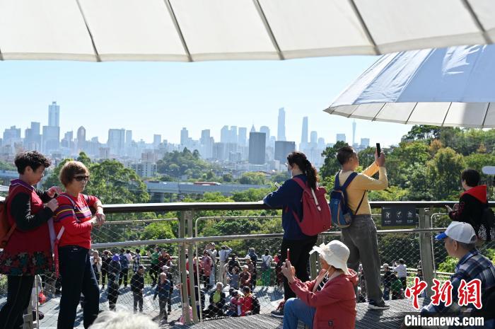 11月29日,廣東廣州,云蘿植物園正式開園,游客在園區(qū)遠(yuǎn)眺廣州塔等城市景觀。中新社記者 陳楚紅 攝