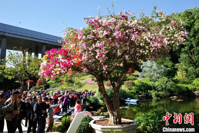 11月29日,廣東廣州,云蘿植物園正式開園,簕杜鵑專類園吸引游客賞花拍照。中新社記者 陳楚紅 攝