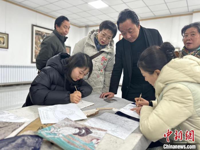 12月17日,由蘭州市七里河區(qū)委宣傳部、七里河區(qū)文體旅局聯(lián)合舉辦的“大漠孤陽(yáng)映彩霞 敦煌神韻美如畫(huà)”新時(shí)代文明實(shí)踐主題活動(dòng)暨敦煌巖彩畫(huà)書(shū)畫(huà)藝術(shù)展拉開(kāi)帷幕。圖為繪畫(huà)愛(ài)好者現(xiàn)場(chǎng)學(xué)習(xí)繪制巖彩畫(huà)。楊娜 攝