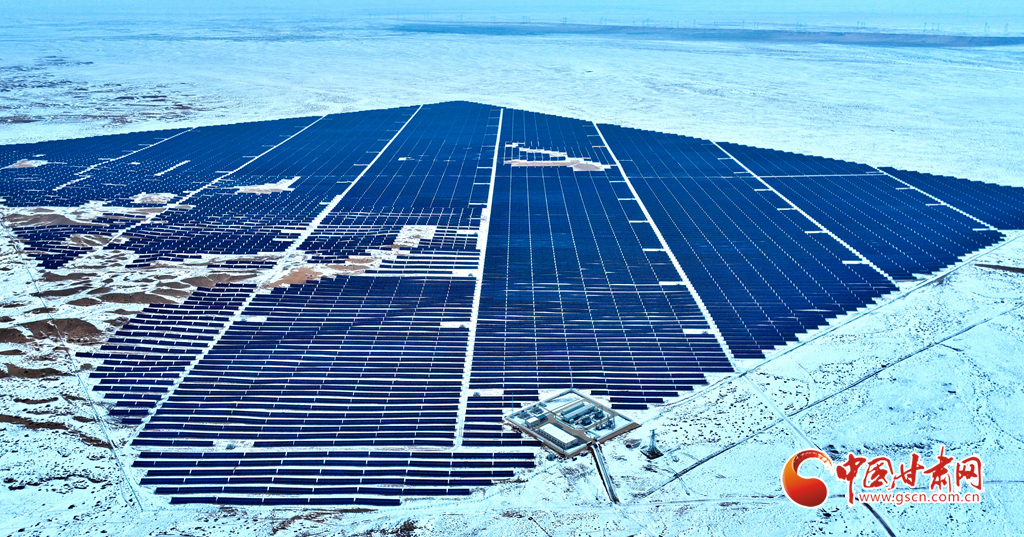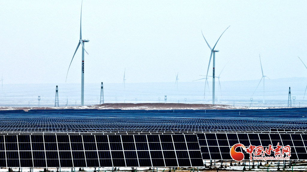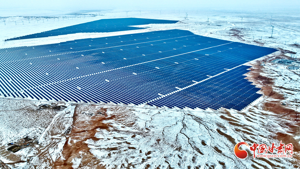 12月18日, 一場(chǎng)大雪過(guò)后,大漠深處的張掖市臨澤縣北部灘新能源產(chǎn)業(yè)園內(nèi),81.1萬(wàn)千瓦光伏治沙光伏集陣和85萬(wàn)千瓦風(fēng)力發(fā)電機(jī)組群,在防沙治沙的同時(shí)將光熱和風(fēng)力轉(zhuǎn)換為電能輸入國(guó)家電網(wǎng),推進(jìn)了“西電東送”輸電工程建設(shè)。