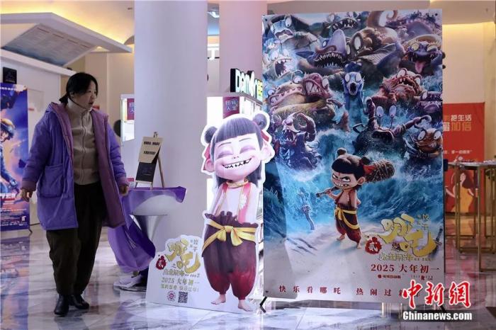 北京一家影院內(nèi)的《哪吒之魔童鬧?!泛?bào)。中新社記者 易海菲 攝