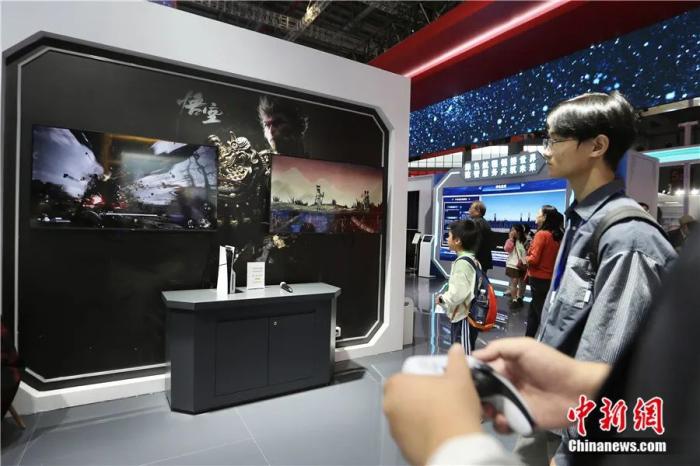2024年11月5日至10日,第七屆中國國際進(jìn)口博覽會(huì)在上海舉辦。圖為11月9日觀眾在中國館體驗(yàn)游戲《黑神話:悟空》。中新社記者 王紫儒 攝
