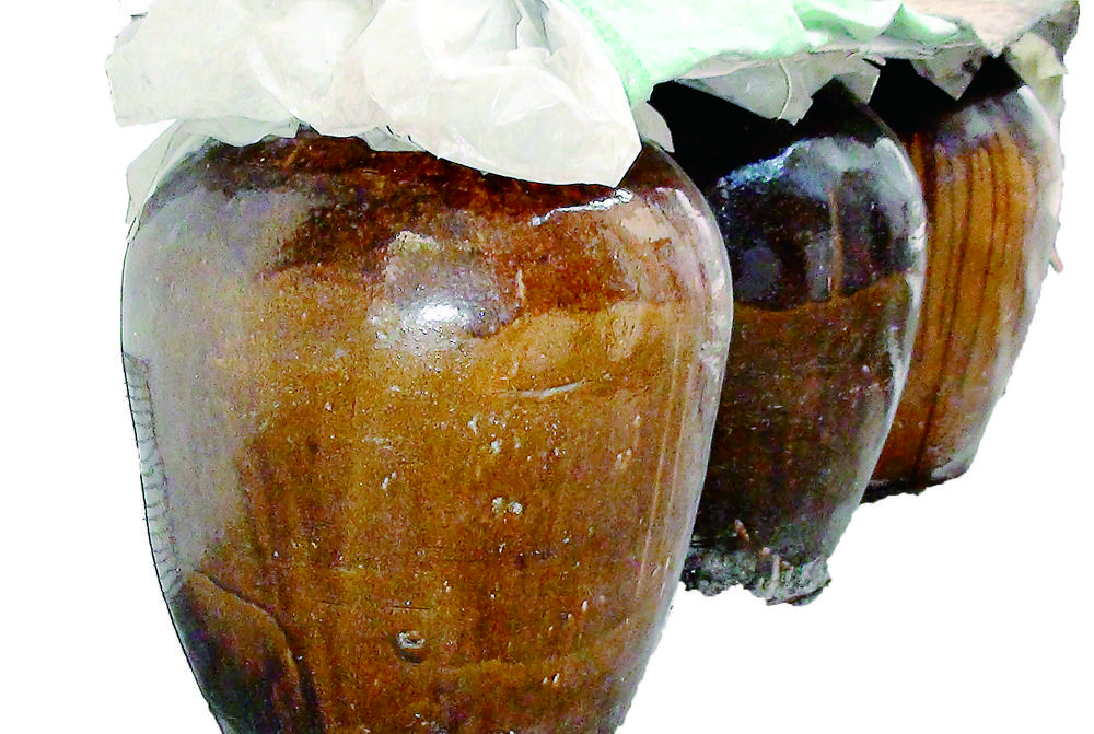 春季是釀造黃酒的最好季節(jié),也是王建平最忙碌的時候。他和徒弟們精選上等黃米、大米、小麥、大麥和青稞,清水淘洗,蒸、煮、涼、拌后,加上優(yōu)質(zhì)酒曲放入大缸密封,經(jīng)過一兩年或兩三年,甚至七八年的窖藏,榨出的地道河州黃酒質(zhì)純、色清,酒精濃度為18度左右。而封存釀期愈長,香味愈濃,色澤愈黃。