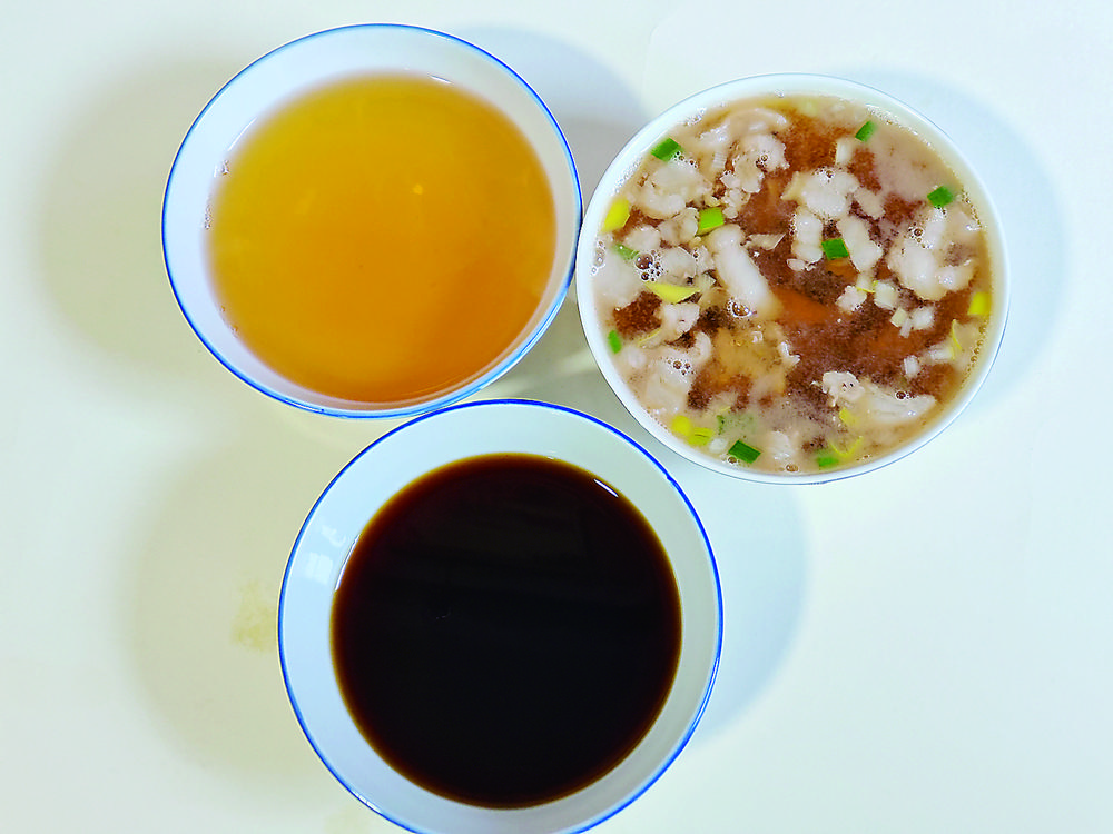 一碗肉酒上桌,羊肉味與黃酒交融后醇香入鼻、垂涎欲滴,品嘗一口便夸贊連連。細嫩的羊肉片、甜洌的黃酒,吃肉不膩,喝酒鮮甜清香,散溢在味蕾,唇齒留香。