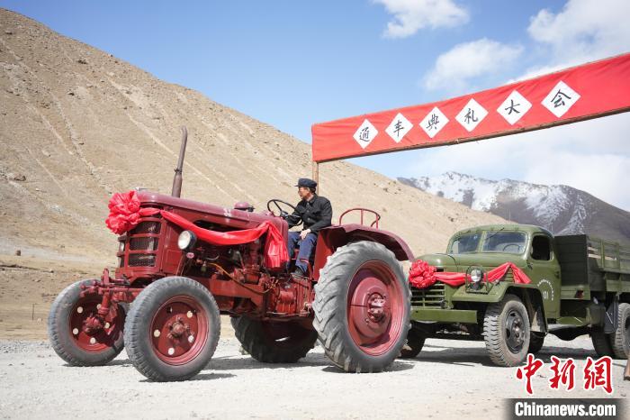 紅色“55輪式拖拉機”名叫“鐵牛”,前杠上寫著“出生年月”:1979年10月。微電影《五十七公里》中,張?zhí)煳妮d著戲中主持修路的陶書記,在牧民們的歡呼雀躍中,將它開進(jìn)通車典禮現(xiàn)場。