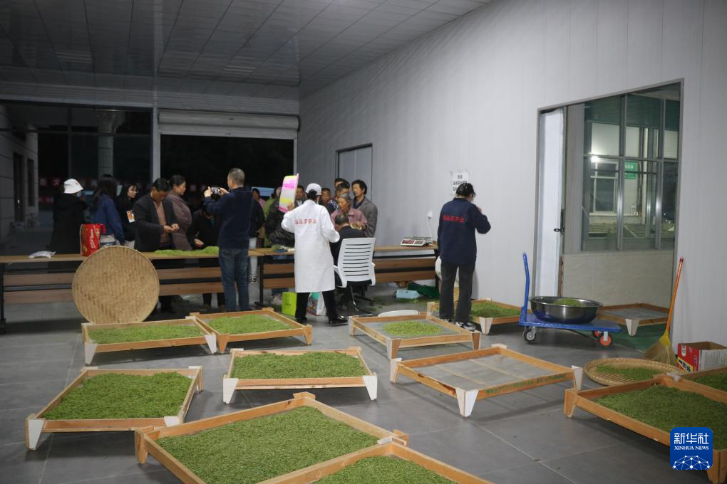中廟鎮(zhèn)溢品茗茶葉加工廠收購當?shù)夭柁r(nóng)茶葉鮮葉。新華社記者李杰 攝