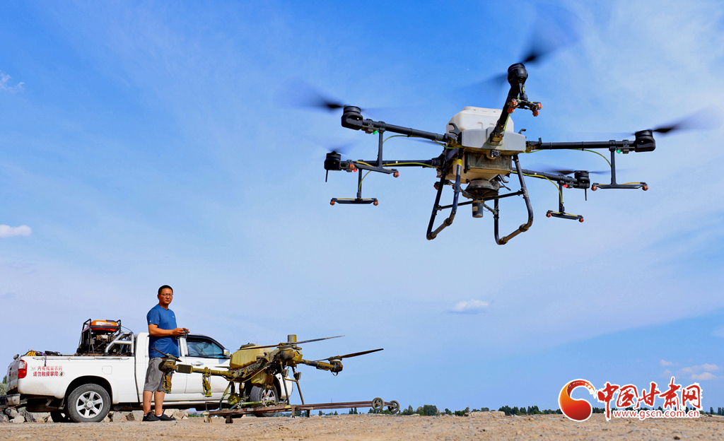6月24日,在高臺(tái)縣夾溝湖水庫螃蟹養(yǎng)殖基地,無人機(jī)操作手啟動(dòng)設(shè)備,載滿飼料的無人機(jī)沿預(yù)設(shè)航線在800多畝螃蟹養(yǎng)殖基地上空精準(zhǔn)投喂。