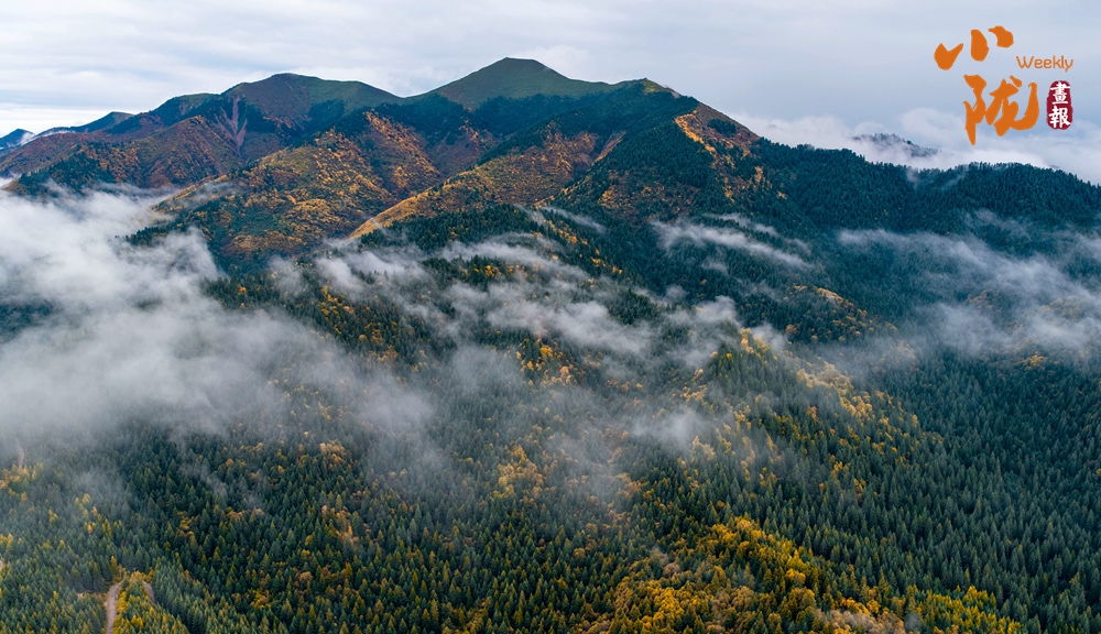 冶力關的群山以原始森林、奇峰異石和湖泊為特色。暖陽下,湛藍的天空映襯著五彩斑斕的群山,綠色與黃色的碰撞下,高原的一切都變得明快起來。