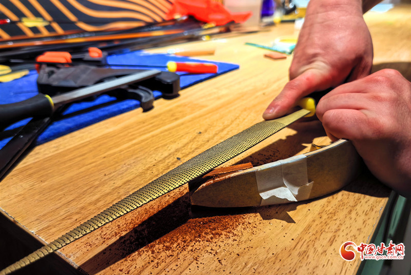 2011年,還是大學生的謝建戈在百度貼吧結識了山東臨沂“高氏傳統(tǒng)弓箭”非遺傳承人高超。囊中羞澀的他提出“先貨后款”,高超被這份赤誠打動,寄來第一套玻片弓料。一個月后,生活費一到賬,他第一時間把錢打了過去——網絡那端的高超從此記住了這個甘肅小伙。2012年,他做出人生第一把玻片弓。