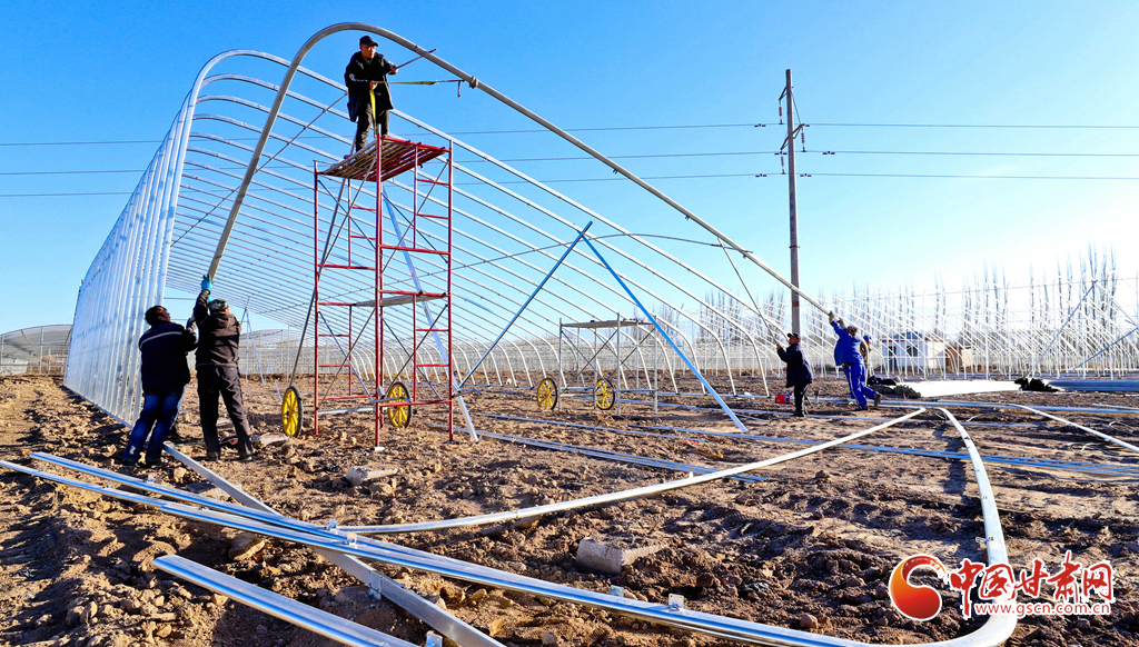 時值隆冬,張掖市高臺縣巷道鎮(zhèn)紅聯(lián)村設施蔬菜產(chǎn)業(yè)基地上,40座高標準鋼架棉簾大棚正在加緊施工。工程建設者們不畏嚴寒,忙碌地進行日光溫室棚體的焊接與固定,同時安裝水肥一體化設備、卷簾機、自動通風系統(tǒng)等配套設施,全力確保超過24000平方米的高標準溫室在年底前順利竣工。該項目將為冬春季蔬菜種植打下堅實基礎,進一步助力群眾增收。