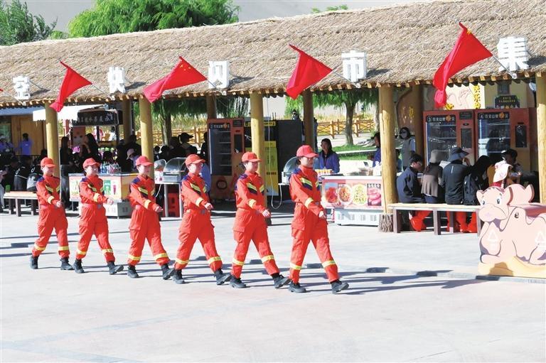 敦煌市消防救援大隊“九色鹿”女子服務(wù)隊在景區(qū)開展消防安全動態(tài)巡查。