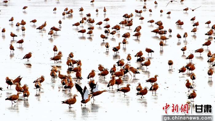 眼下,正是候鳥南遷的重要時節(jié)。位于黑河流域的張掖市高臺縣濕地保護區(qū),迎來大批遷徙候鳥駐足停歇。天鵝、白鷺、赤麻鴨等多種鳥類在此棲息覓食,構(gòu)成一幅生機盎然的戈壁水鄉(xiāng)生態(tài)畫卷。(段海 黃鑫)