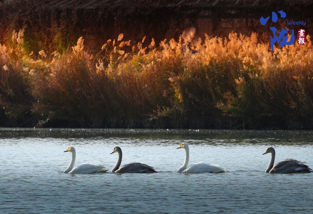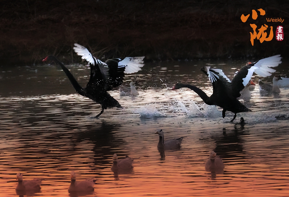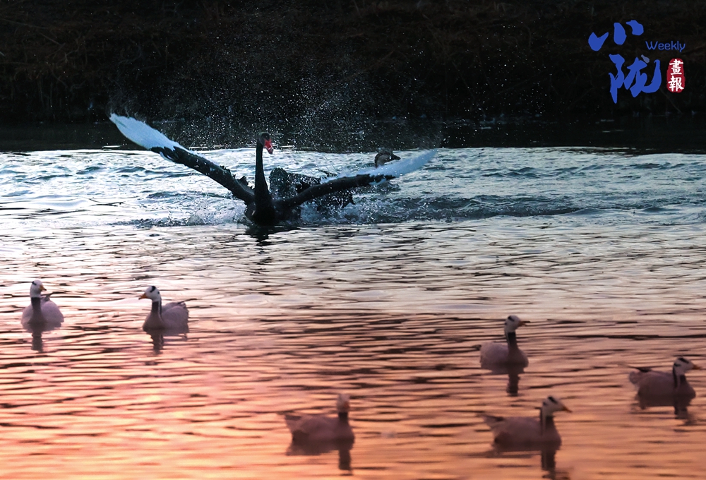 這里聚集了天鵝、赤麻鴨、灰雁等多種水鳥,它們在黃昏里愜意地游弋,或扎進(jìn)水里捕魚,或相互追逐戲水的畫面,既震撼又溫柔,成為攝影愛好者和游人爭相追逐的“冬日奇景”。