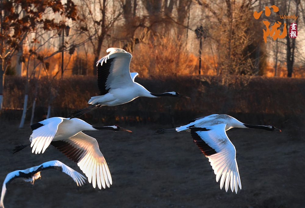 陽(yáng)光斜照,丹頂鶴昂首振翅,發(fā)出清越的鳴叫,隨即騰空而起,在空中劃出一道弧線。這一幕,不是排練,也不是表演,而是它們生命中最真摯的告白。