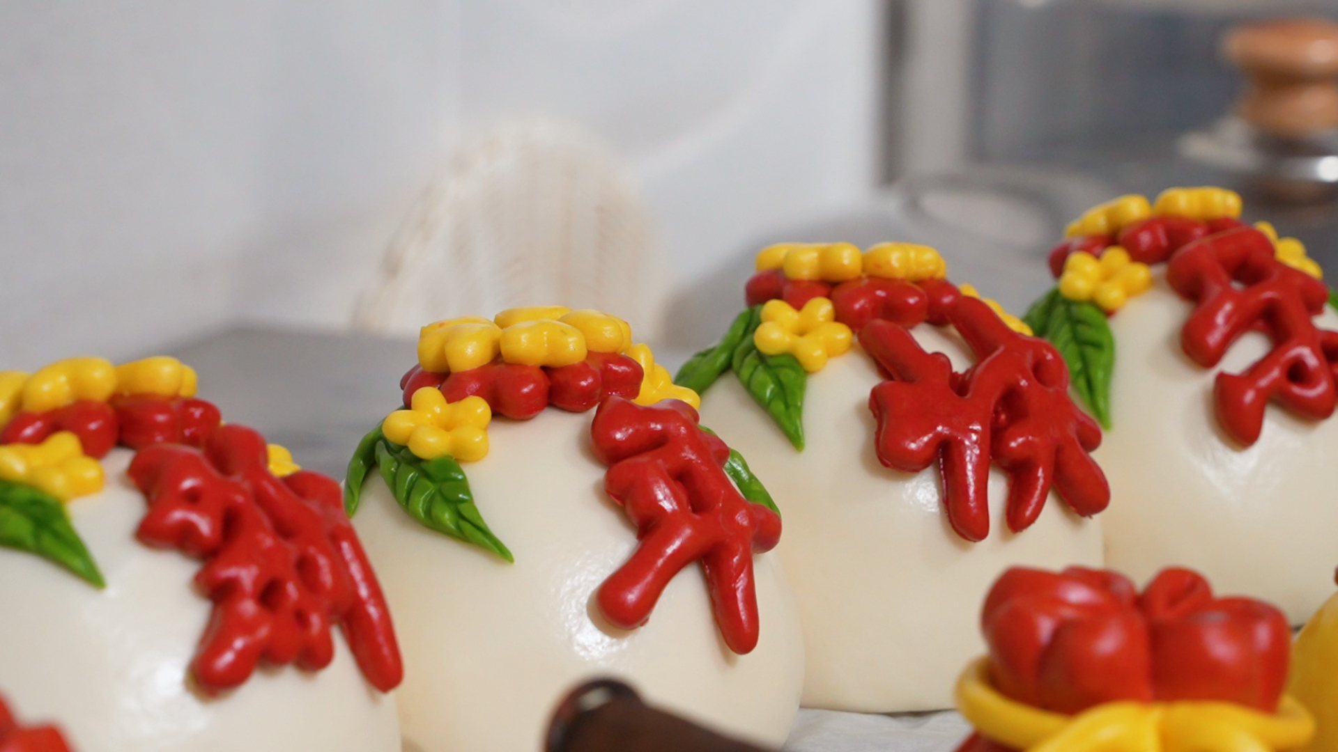 三年前,李艷艷偶然在網(wǎng)上看到花饃制作視頻,第一眼就被那鮮艷的色彩與生動的造型吸引。“當(dāng)時就覺得,這饃怎么這么好看!”李艷艷說,“我是個閑不住的人,有了念頭就想試試。”說做就做,她隨即遠(yuǎn)赴山東學(xué)習(xí),將這份心動從興趣慢慢沉淀為事業(yè)。