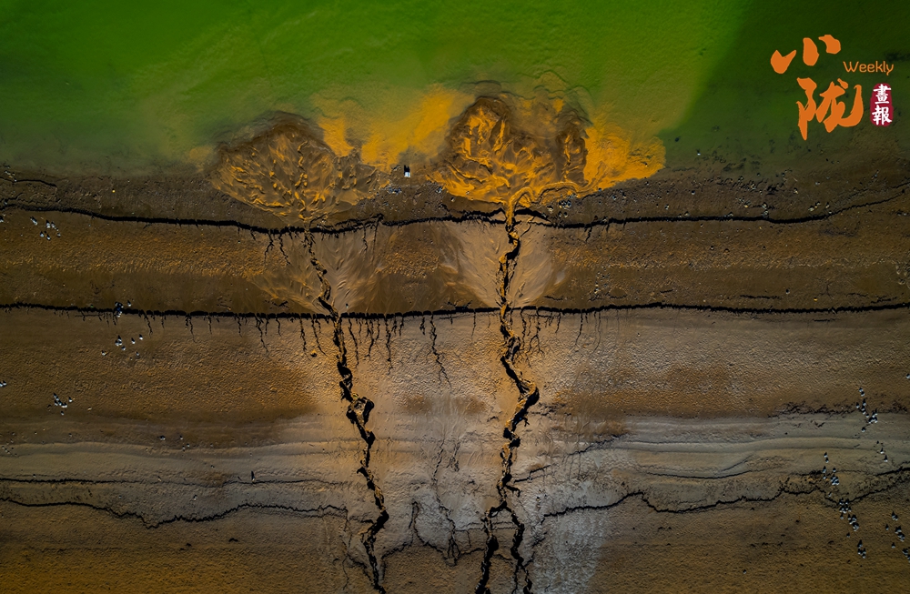 干燥的泥表交錯分布、由主到次不斷分岔,形成如老樹虬根般蜿蜒伸展的圖案。那細(xì)膩而連貫的線條,猶如大自然親手繪制的一幅“根系地圖”,記錄著水分消退的足跡。