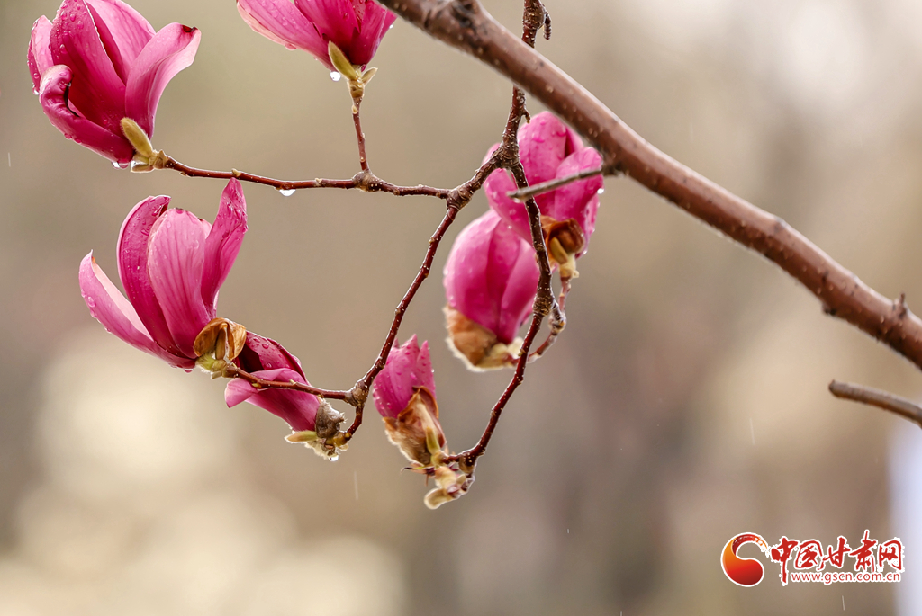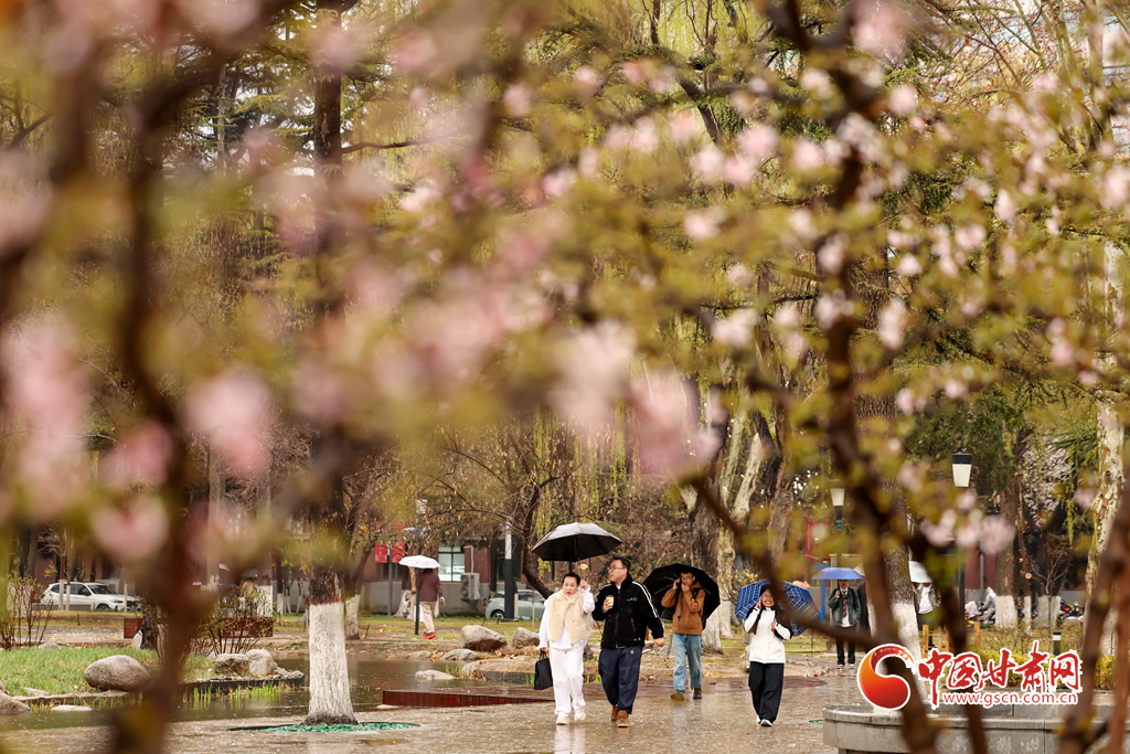 3月29日,蘭州迎來降雨天氣。蘭州大學(xué)校園內(nèi)細(xì)雨綿綿,繁花帶露,師生漫步雨中賞花觀景,盡享春日詩意。溫潤春雨潤澤金城,勾勒出清新雅致的春日畫卷。