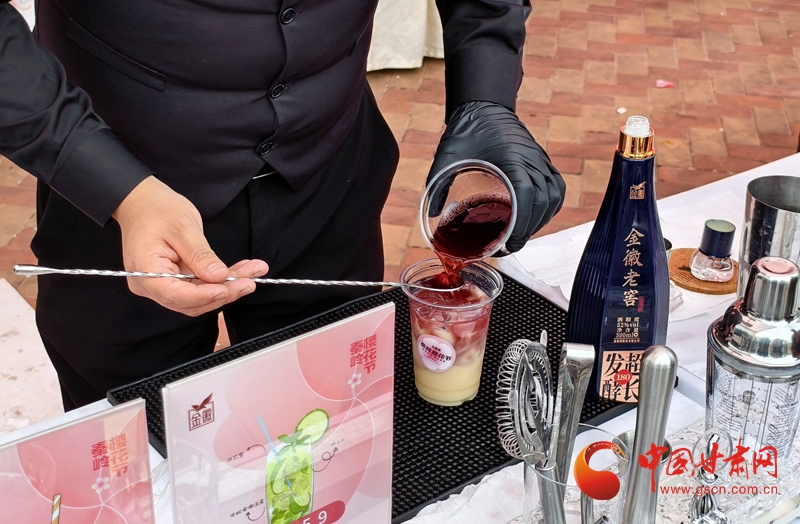 活動現(xiàn)場,各類互動體驗精彩紛呈。霓裳櫻影漢服秀與花神巡游成為流動風(fēng)景線;DIY調(diào)酒區(qū)人氣高漲,游客親手調(diào)制櫻花主題金徽特調(diào);非遺工藝展示臺前,傳承人現(xiàn)場演示古法工序,讓觀眾觸摸“指尖上的匠心”;金徽文創(chuàng)展銷區(qū)人頭攢動,特色衍生品備受青睞。